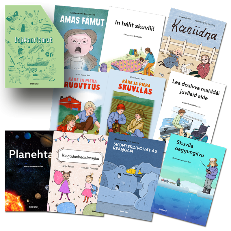 Temaer er hverdagsnære fortellinger om barn, følelser og læring i samisk kontekst. Målgruppe er elever fra 1-10. klasse. Boksen inneholder 10 hefter.